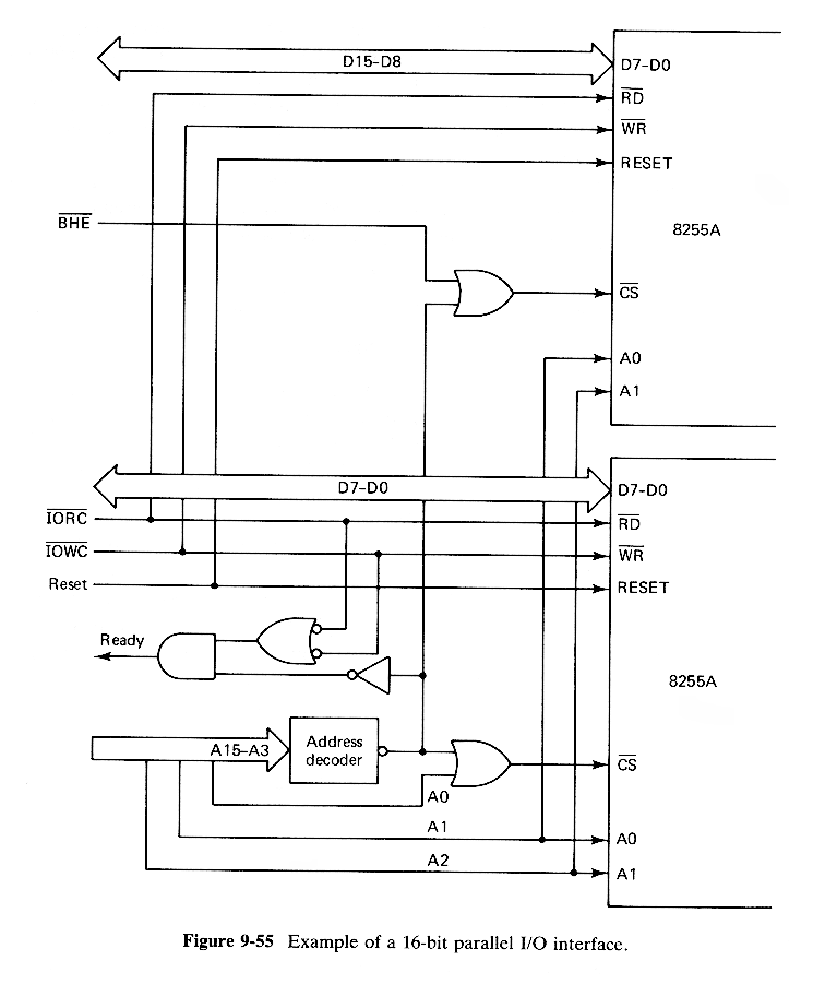 a 0 is applied to \CS.For the upper 8255A, both the chip select and \BHE