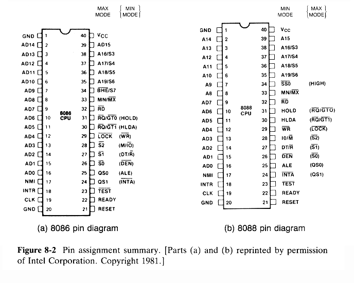 | 2-16 | AD14-AD0 | I/O-3 | Outputs address during the first part of the bus cycle and inputs or outputs data during the remaining part of the bus cycle. (On 8088, AD15-AD8 are A15-A8 and are only for outputting address bits.) |