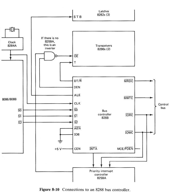 Not shown in Fig.8-10 are the /AIOWC (advanced I/O write command) and /AMWC (advanced memory write command) pins. They serve the same purposes as the /IOWC and /MWTC pins except that they are activated one clock puls sooner. This gives slow interfaces an extra clock cycle to prepare to input the data.